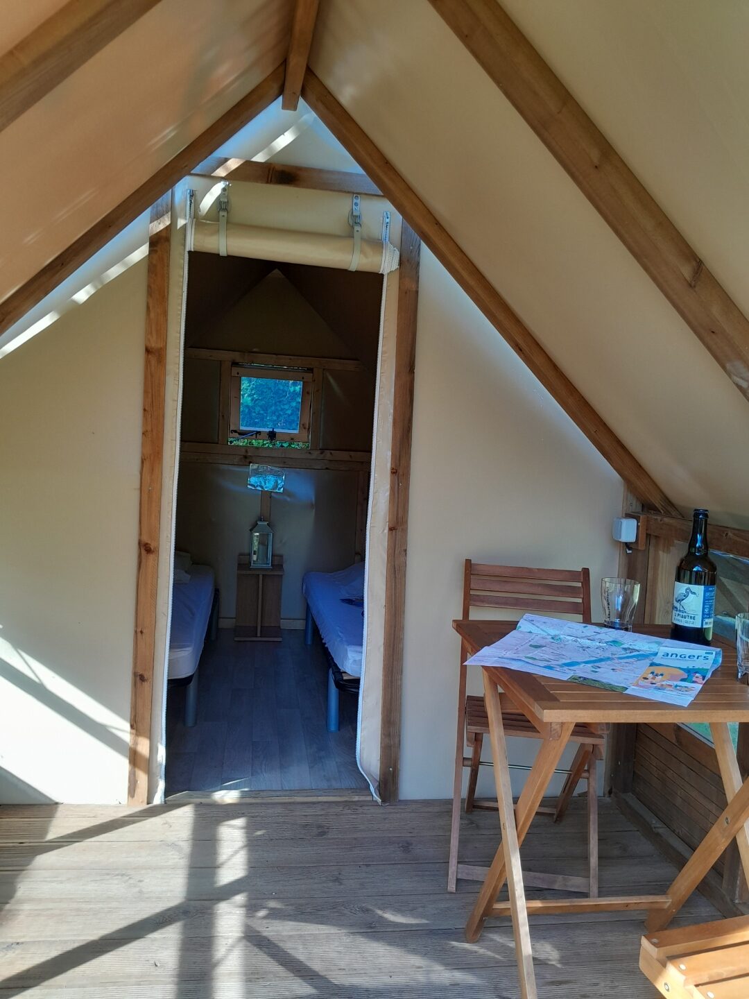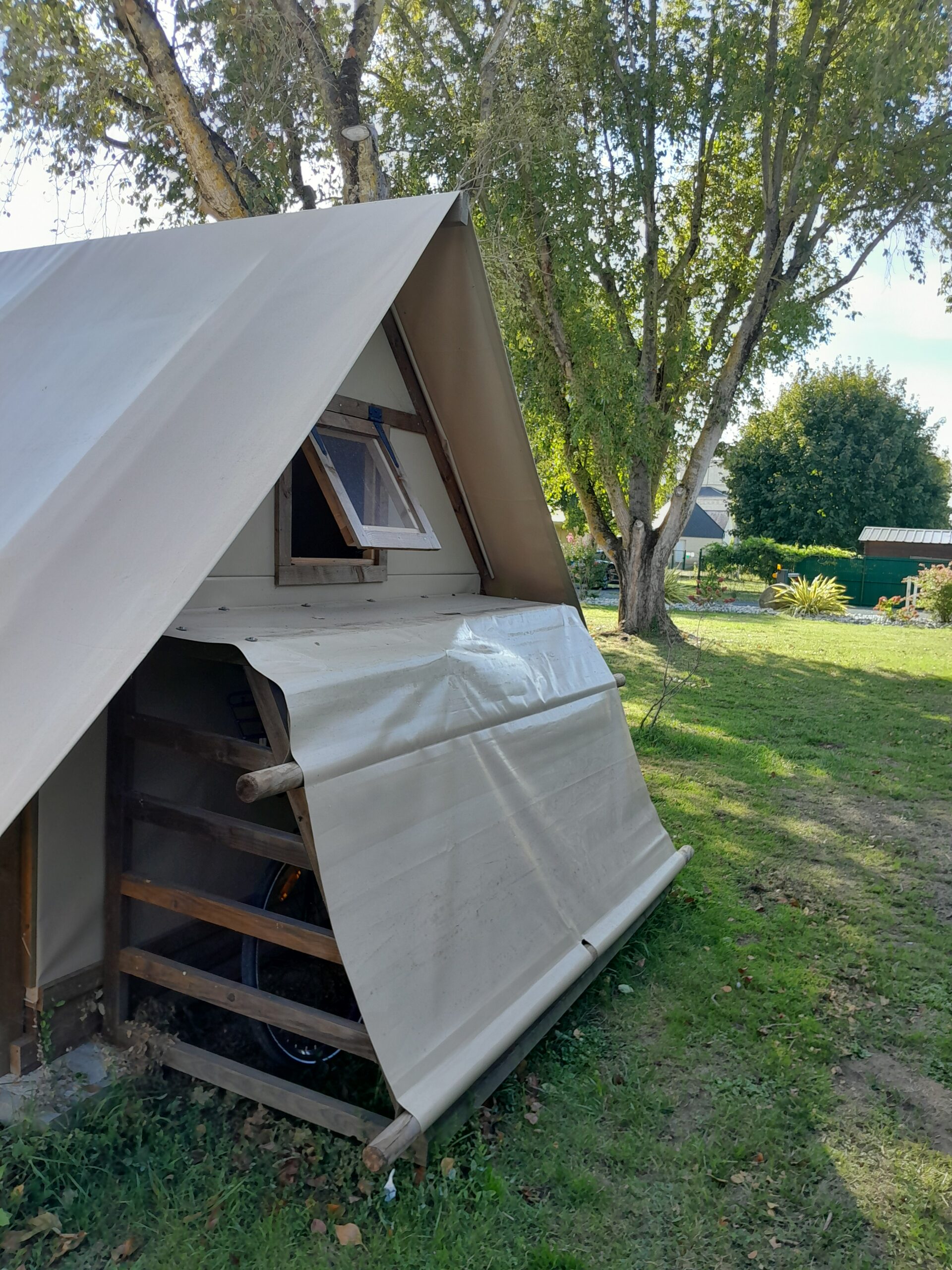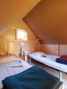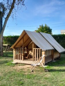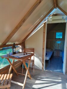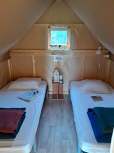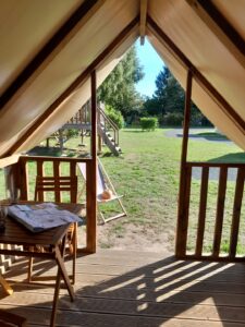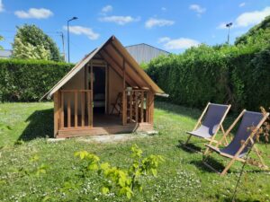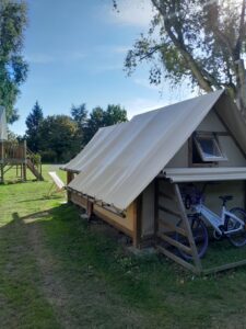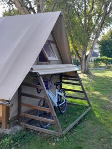Le petit plus : un abri vélo privé situé à l’arrière de la tente pour sécuriser deux vélos !